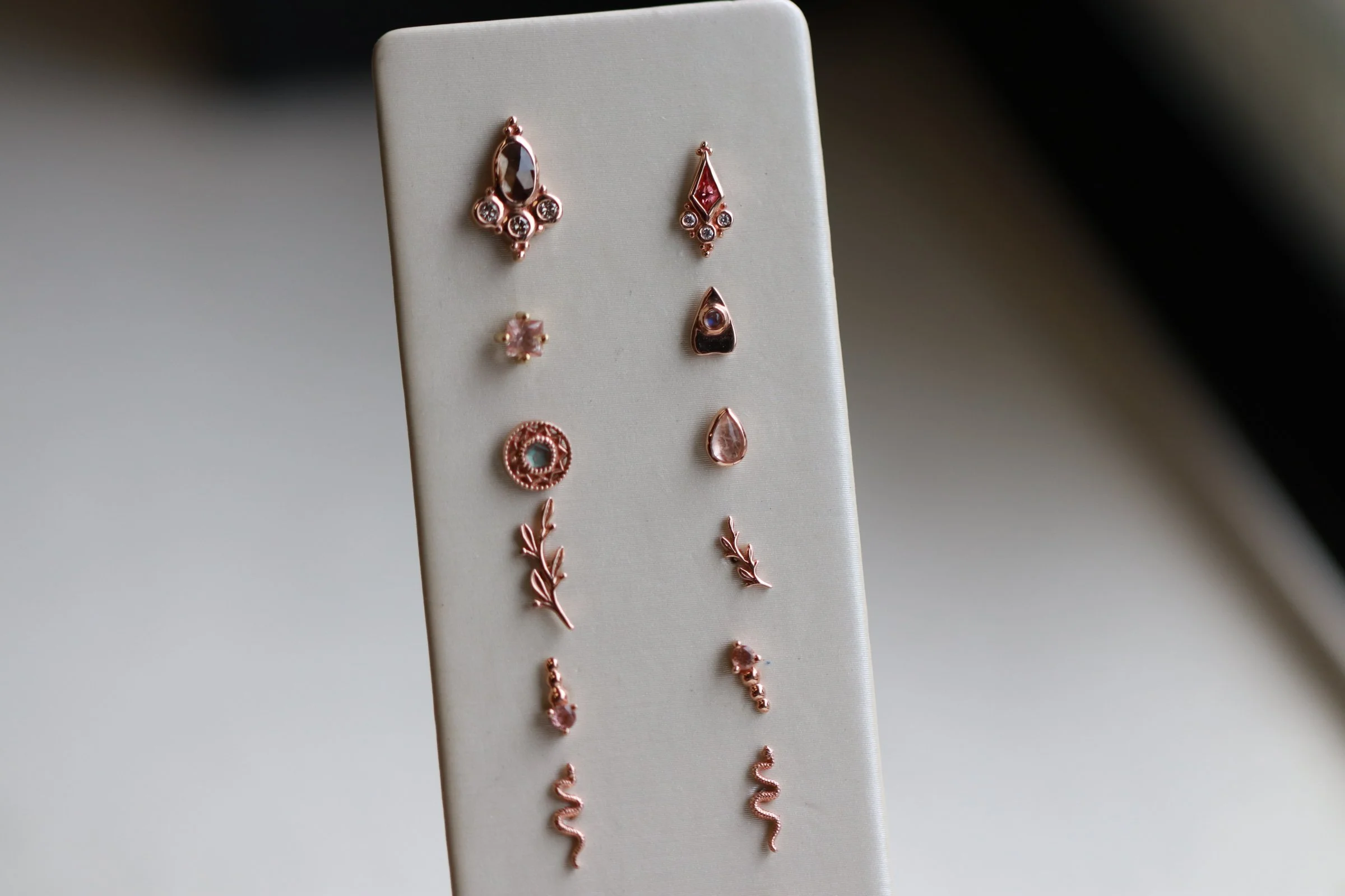 We help you fall in love with a piece (or pieces) of jewelry first, then design the piercing around it.